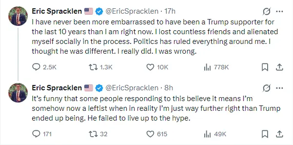 I'm sure some trump stooge will say these are secret George Soros operatives, and some morons will buy it. But everyone else sees the anger boiling up among Republicans who only voted for cheaper groceries, cheaper eggs, and to not have a Black woman be president. Republican politicians are afraid of their MAGA base? The ones who supposedly have all the guns? We'll see.