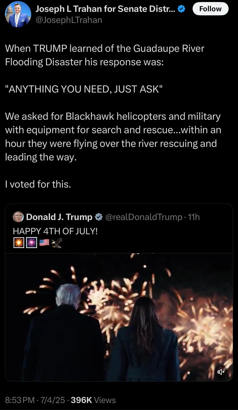They would have checked if the victims voted for Trump.Here is the MAGA response to the floods: Instant help instead of the Fed government dragging its feet for months.