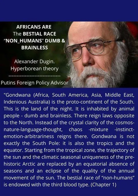 At this point, if you still deny TuckerCarlson is a Muscovite asset, you're either a liar, or a moron...or, quite possibly, both. Aleksandr Dugin, aka “Putin’s brain”, is an anti-American bigot who wrote a book titled: “The American Empire should be destroyed” and was behind the annexation of Crimea and the invasion of Ukraine. Tucker Carlson is a Muscovite asset.