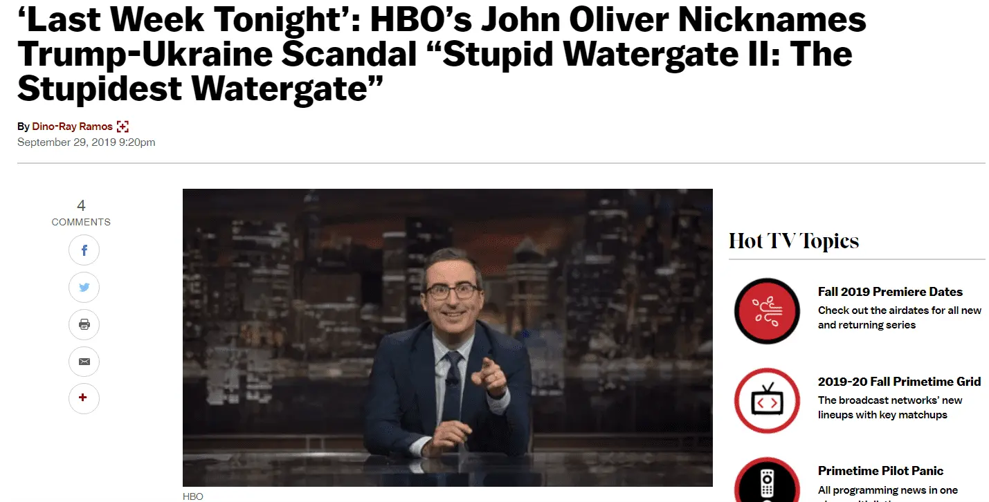 ‘Last Week Tonight’: John Oliver Discusses Trump-Ukraine Scandal – Deadline