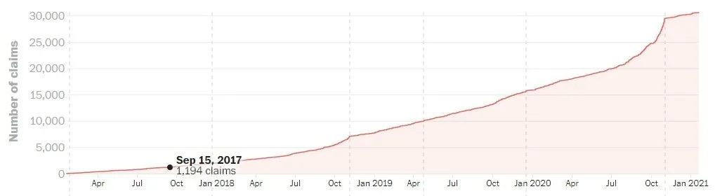 Trump’s false or misleading claims total 30,573 over 4 years