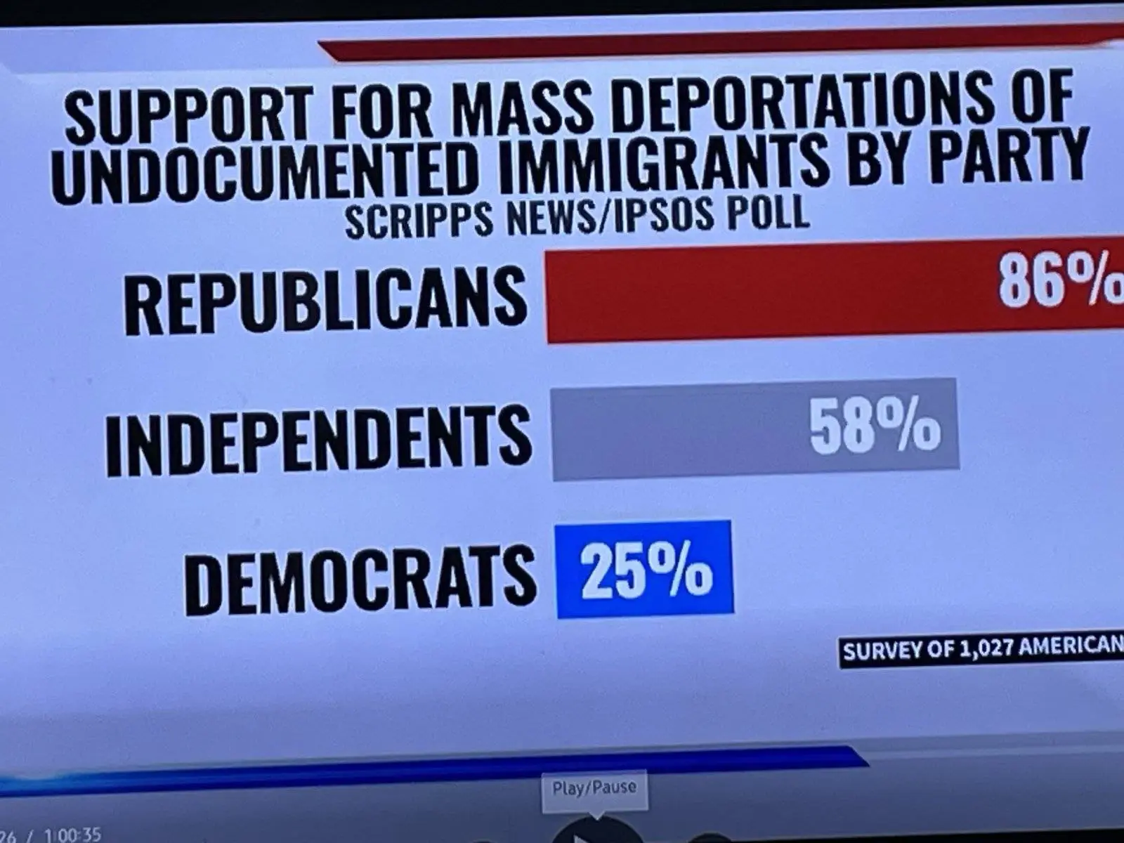 The radical left probably thinks that 2% of Democrats would support the mass deportations of undocumented immigrants. Nope wow look at the remarkable Poll results.