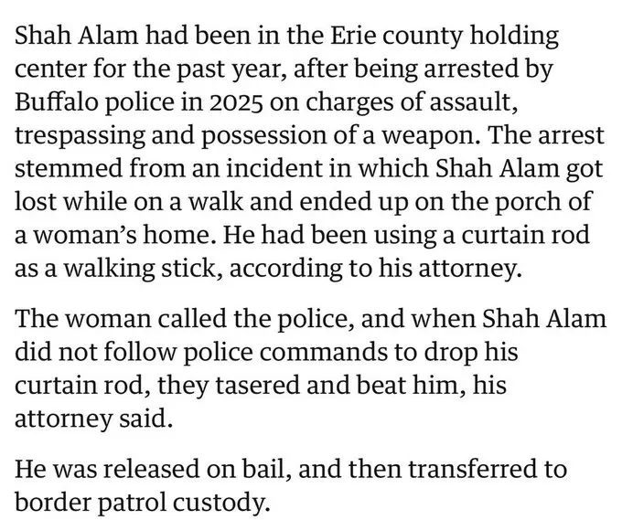 Border Patrol dump blind refugee 5 miles away from home—he was found dead on the street. Officers dropped him off in front of a donut shop—didn't notify his lawyer or family he was even released. When reported missing—local police said he was in ICE custody and stopped looking for him. Nurul Amin Shah Alam is 56 years old, nearly blind, spoke no English, and dealt with serious medical conditions. He was left to die alone—abandoned in the year's worst winter storm on the streets of Buffalo, New York.