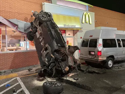 Man driving with no lights on crashes into McDonald’s in Springfield