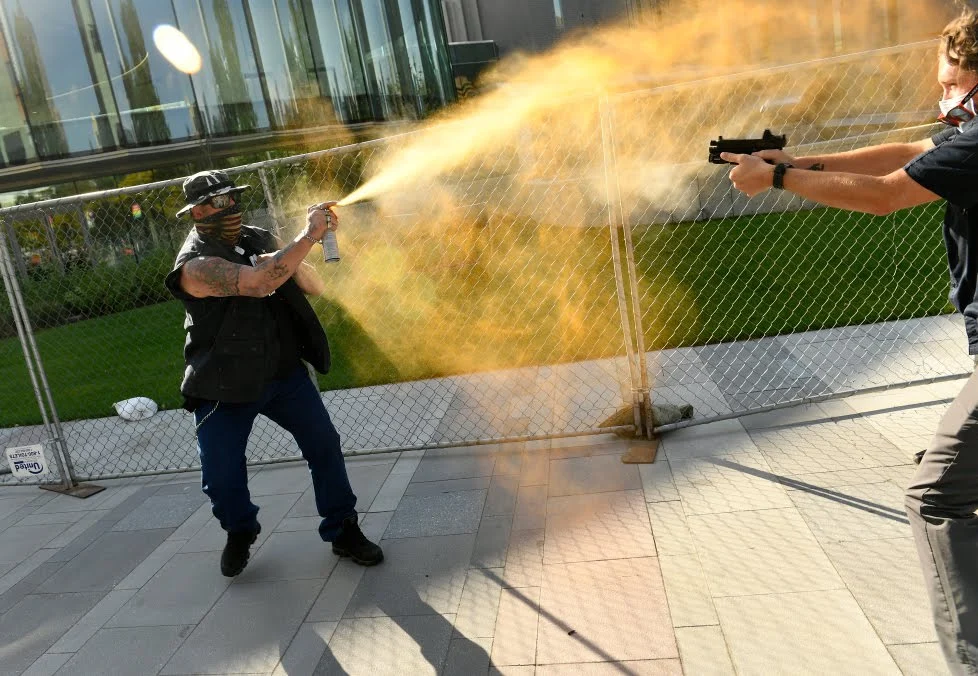 The moral of this is, You don't bring mace to a gunfight.....