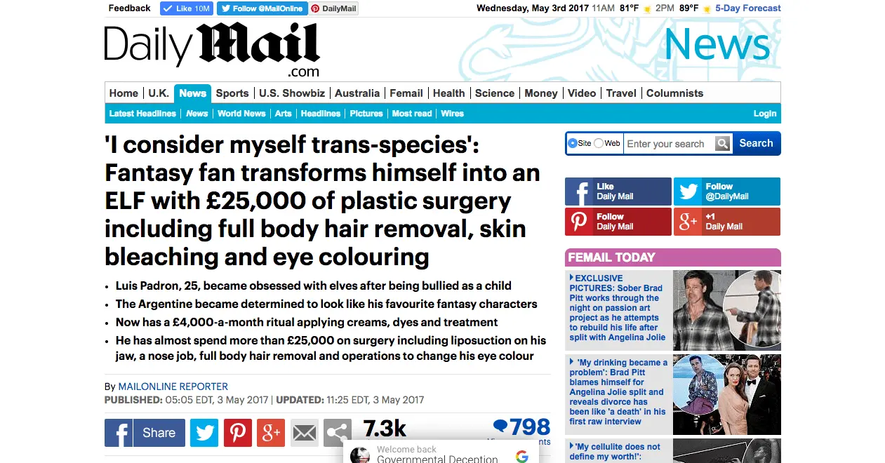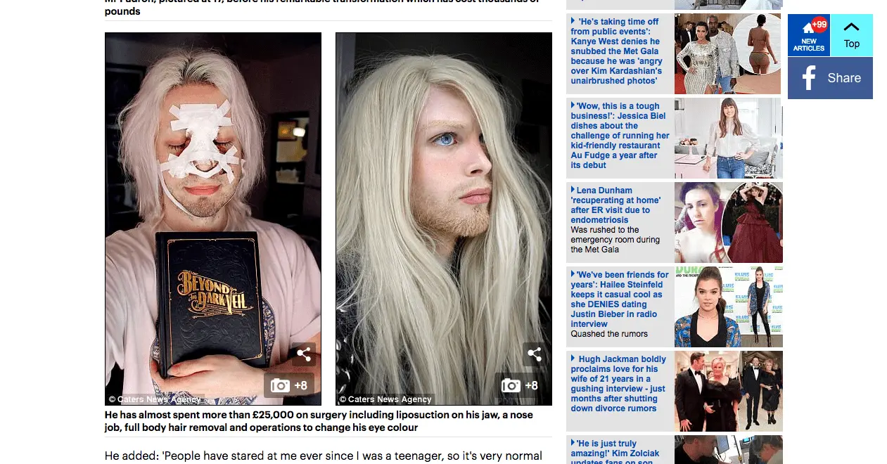 A fantasy fanatic has spent more than £25,000 on plastic surgery as he wants to become a real-life elf. Luis Padron, 25, from Buenos Ares, Argentina, became obsessed with the world of elves, angels and fantasy beings after being bullied as a child. He became determined to look like his favourite otherworldly characters and started bleaching his hair and skin. He now has a £4,000-a-month ritual applying specialist creams, dyes, treatment and SPF 100 sunscreen. He has almost
