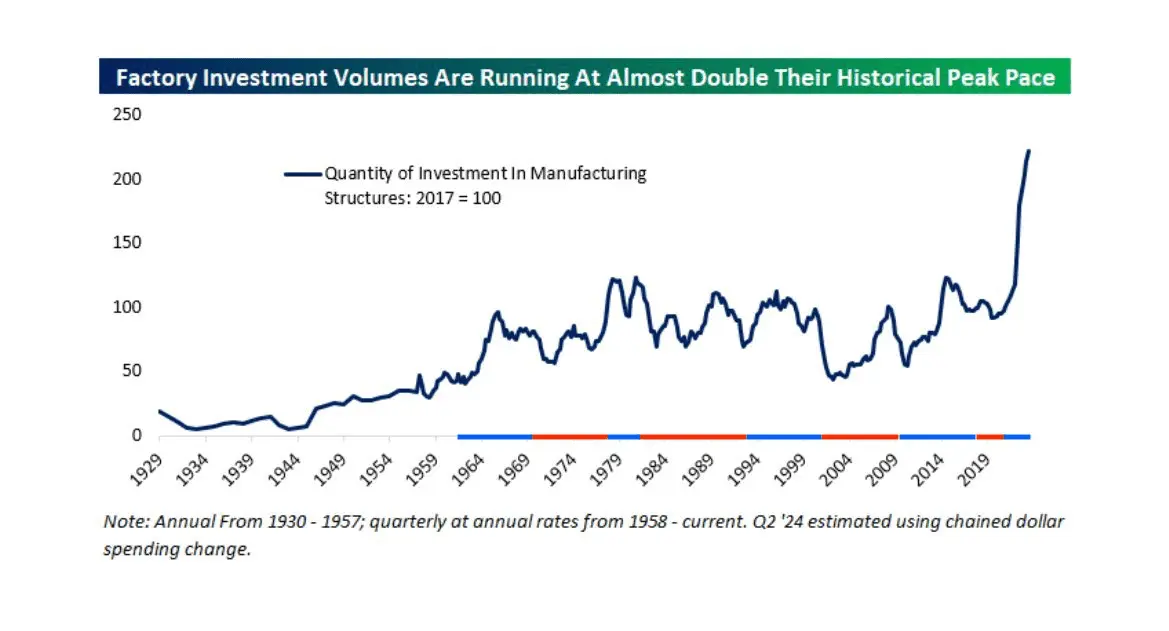 This is due to the misnamed Inflation Reduction Act, the Chips and Science Act, and a push to bring supply chains away from China.