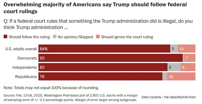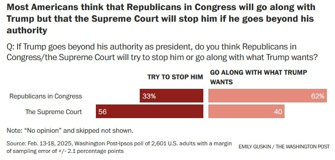 Multiple polls this week have shown his approval rating dropping into more normal territory for him, in the mid-40s. And a new Washington Post-Ipsos poll crystallizes a number of warning signs for Trump’s agenda of drastic and legally dubious change.