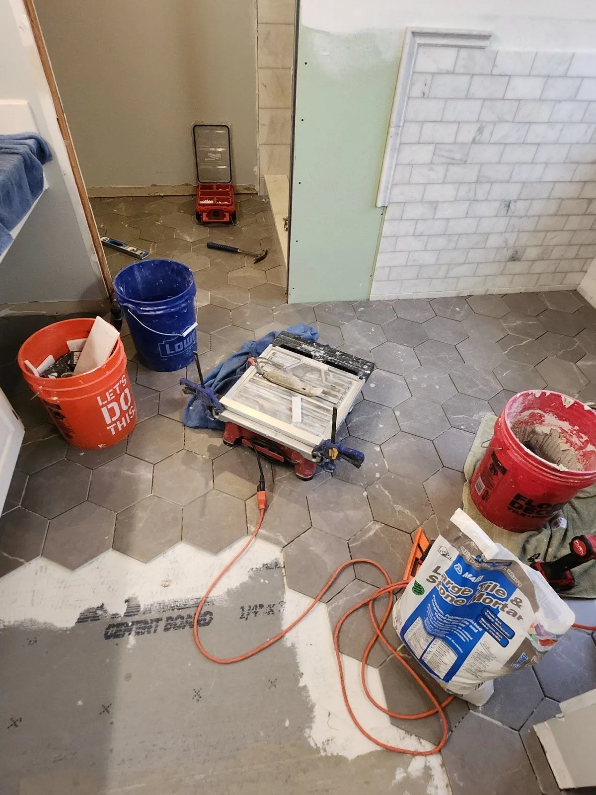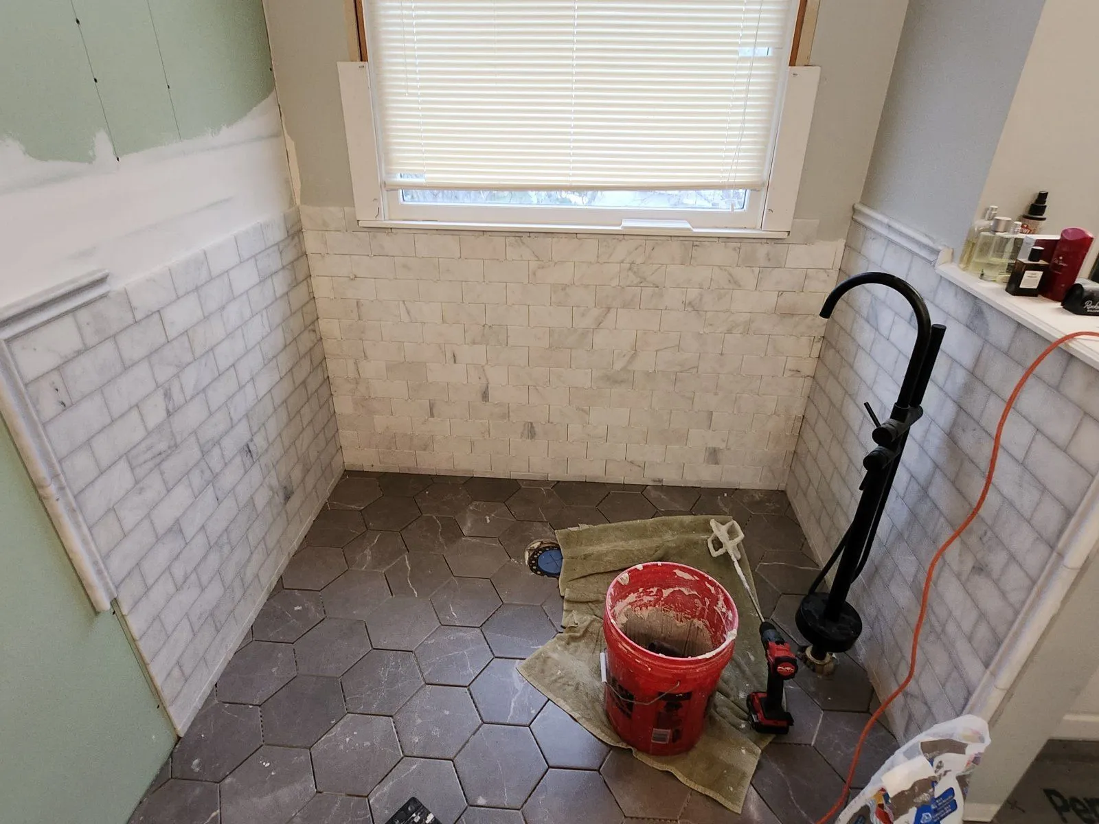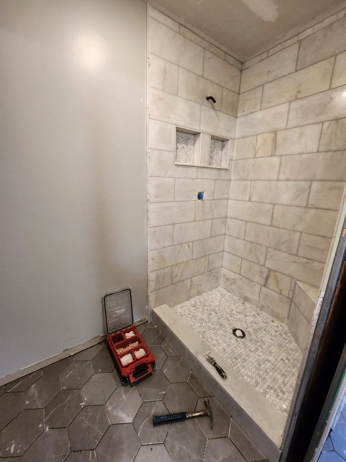 Was supposed to finish the stone today but the majority or the marble chair rail for around the tub area was so off on color I sent it back.