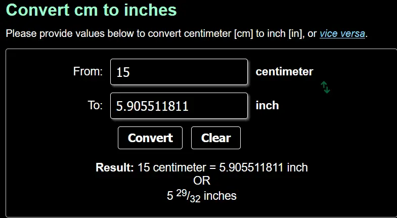 Approx 6 or so.How many inches is 15 cm?