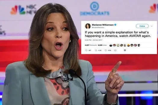 I never said I'd screw her. Sex is probably against her religion. I just want to ruin my life by marrying her so I could experience all of these spiritual forces she keeps talking about.Crazy in the head, good in bed. I want to propose to her and make my life a chaotic spiritual mess.She’s a deep thinker too.Williamson is the one to beat. She's clean, articulate and can yodel