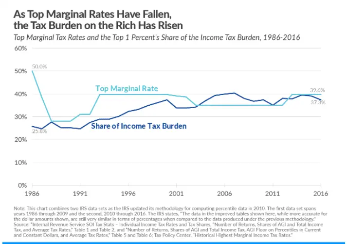 In the 1950s, when the top marginal income tax rate reached 92 percent, the top 1 percent of taxpayers paid an effective rate of only 16.9 percent.