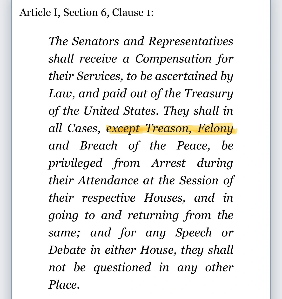 Members of Congress are protected by the Speech and Debate Clause of the U.S. Constitution.This means: