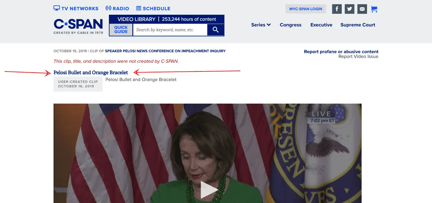 Pelosi Bullet and Orange Bracelet | C-SPAN.org