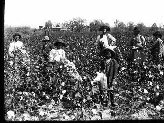A google image search reveals the image is found on the Wiki page "History of African-American agriculture" and is captioned "Black cotton-farming family (c. 1890s)."Maybe. Could also be share cropping, or employee's. Context matters.