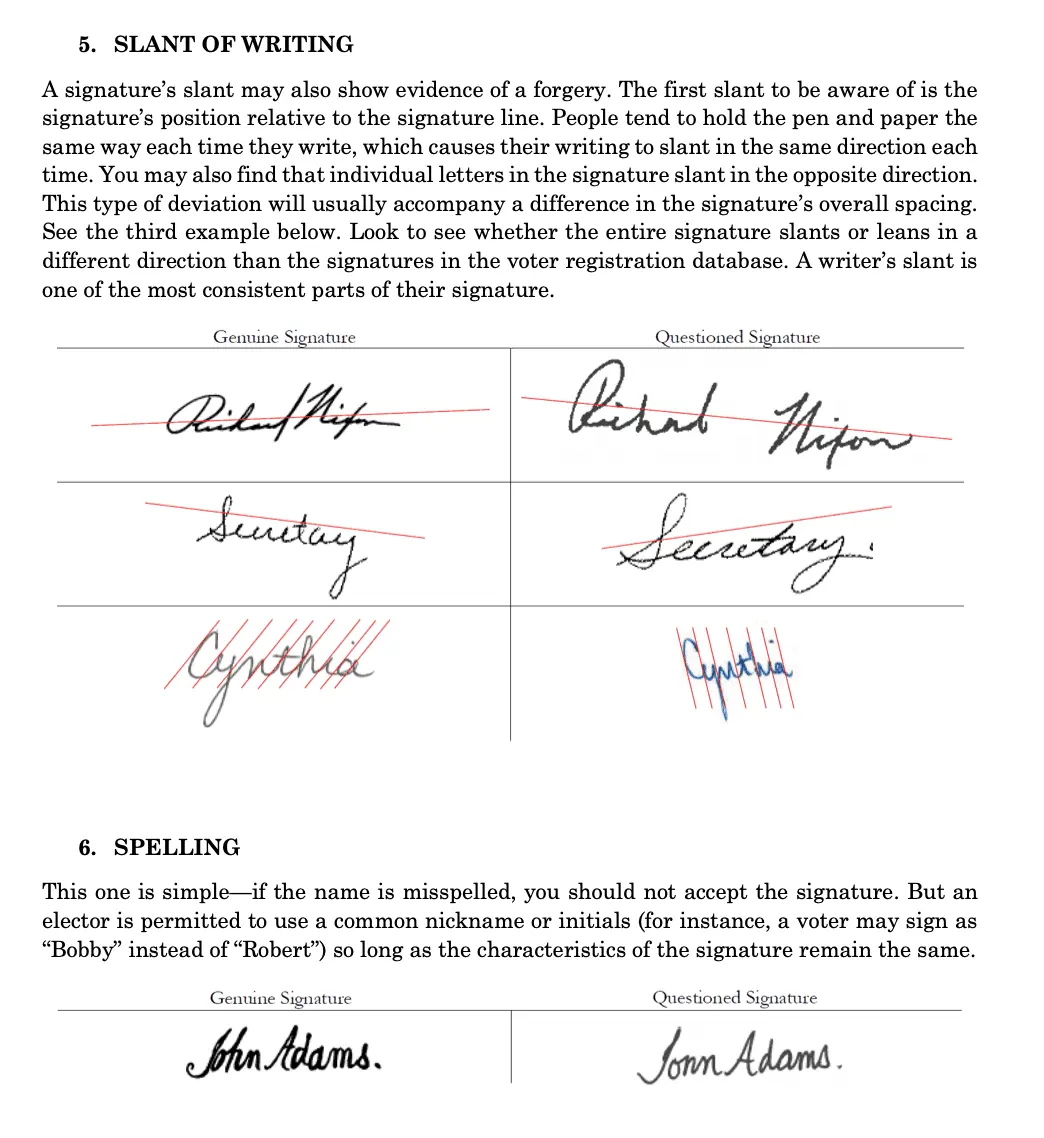 comparing the envelope signature with the voter form signature. I'm going to shout!