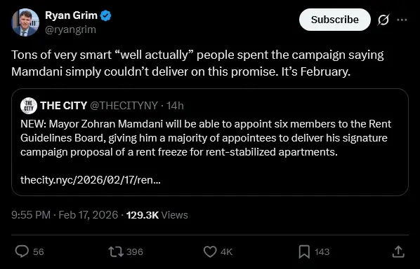 I think you're underestimating the power of the progressive movement in NY. Governor Hochul is partnering with Mayor Mamdani on a $1.5B bill. And the Mayor has other options should the Wealth Tax be held up.