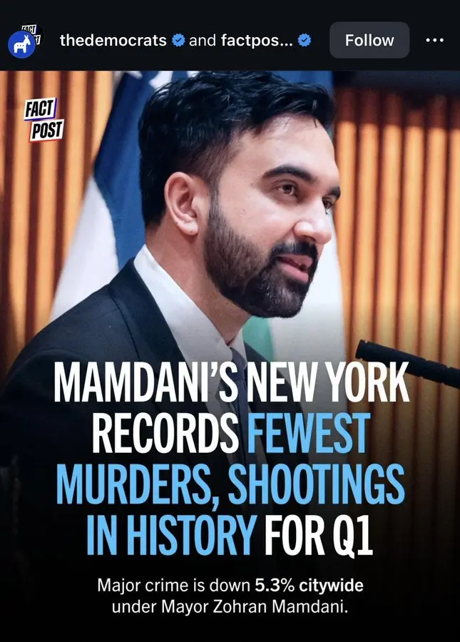 Synthaholic said: Lol! Click to expand... What did Mamdani do to reduce crime? Besides fudging the numbers?