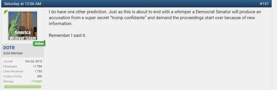 No, all it will do is give the Democrats a venue for attacking the President without accomplishing anything for the American people. It would also prevent Warren and Sanders from campinging, pretty much giving Biden a free ride to the nomination.Oh, I agree to that one. But what it might do is to convince those 20 to go for censure and I am sure that the Dems will go for that for the Win.