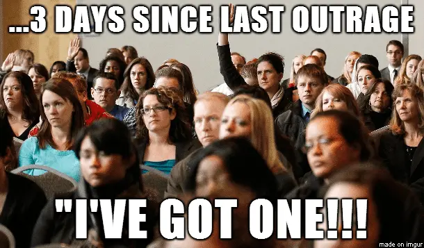 The leftist mentality of a basic NEED to be constantly and perpetually outraged is a very real political topic.