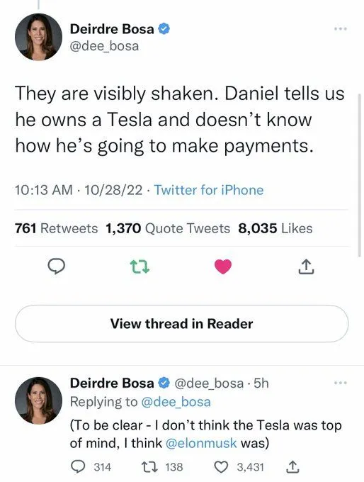 These guys should be Twitter employees for real. Musk could hire them to handle media relations:Reporters applied little scrutiny to the two men, one of which claimed she was named “Rahul Ligma,” which is a name that does not exist in Twitter’s Slack or email system. The name is obviously fake to those familiar with internet culture, as “Ligma” is a long-running internet joke/meme designed to elicit the response “ligma balls” from the people who are in on the joke.