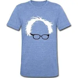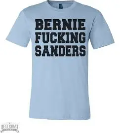 Bernie Sanders’ campaign is now selling t-shirts with this design by Shepard Fairey, the guy who made the red-and-light-blue Obama “HOPE” poster: Finally, the Sanders campaign finds that iconic image that screams “national socialism.” I guess tomorrow belongs to them.