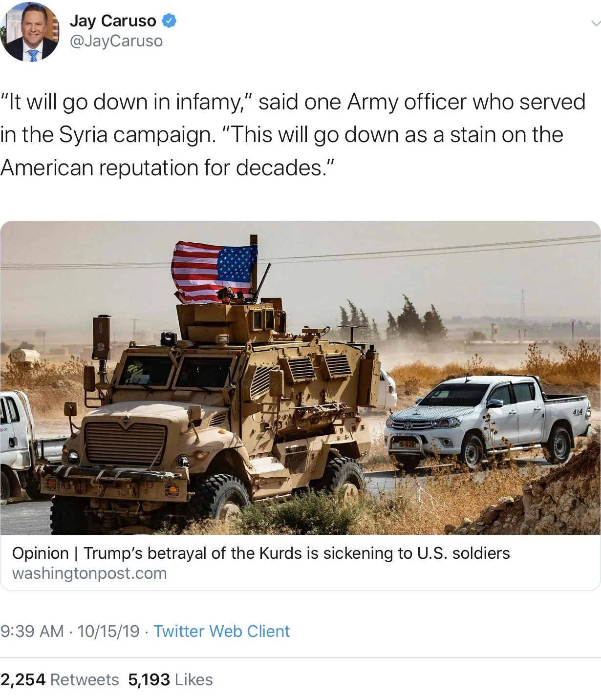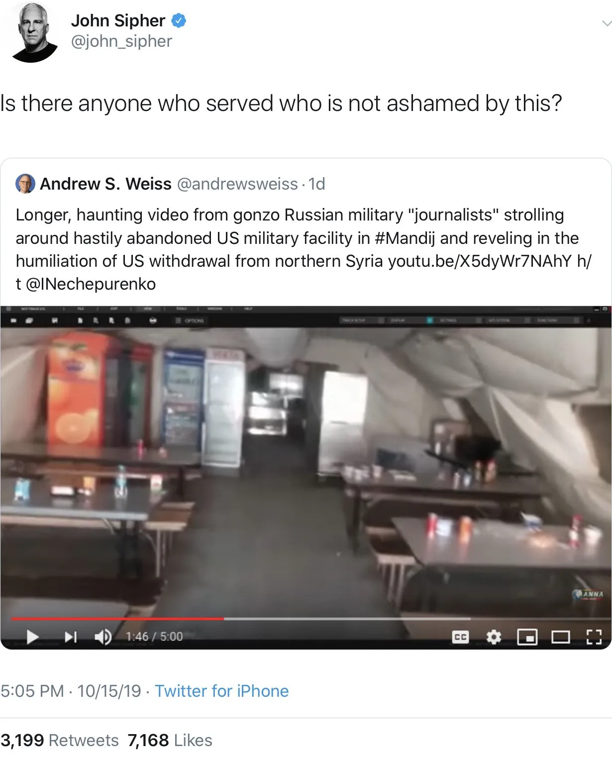 Congratulations. You found at best two servicemen who disagree with Trump.Yes. daveman is not only not ashamed, he’s cheering. #FakePatriotMy goodness. The only member of the United States Armed forces disagrees with the CinC.For the next time daveman starts his bullshit about how the military is behind Trump.