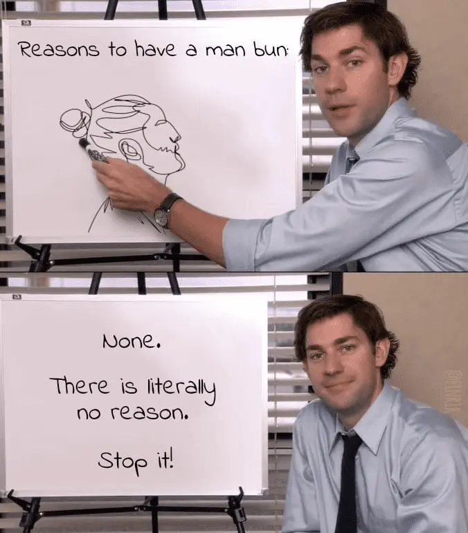 a close hair cut is a better wayLong hair on men goes back to the Neanderthals. A bun is one way to keep your head from being tangled up in a machine.