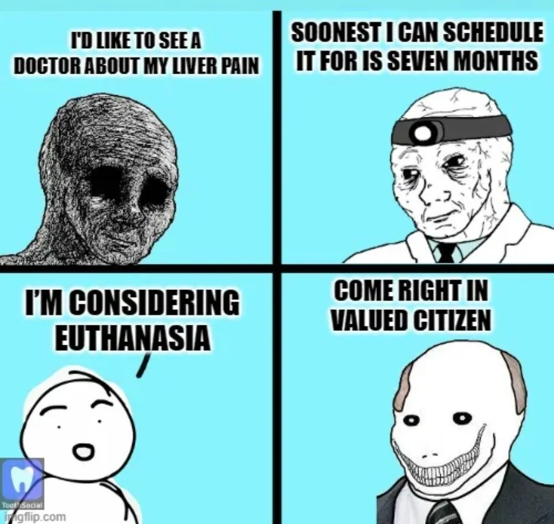 But as a Canadian I'm sure you'll be in favor of euthanizing all those people anyway right? Isn't that what your health care system is known for now?