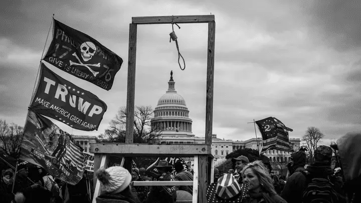 There are photos of the gallows and the noose they set up and a guy parading around with a Confederate flag.