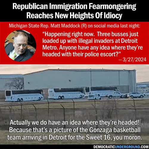 On social media, Rep. Matt Maddock said buses near a Detroit airport had been "loaded up with illegal invaders.” The airport later said the buses were "transporting the basketball teams and their respective staffs."