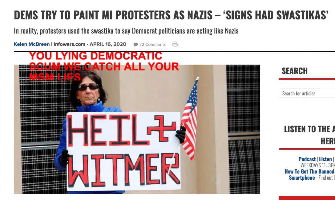Next, she pivoted to the narrative that the protesters are racist, saying, “I’ve not often seen a Confederate flag at the state capitol—and there were a few of them. There was someone who had signs that had a swastika on it. It was really a very political demonstration and rally.”