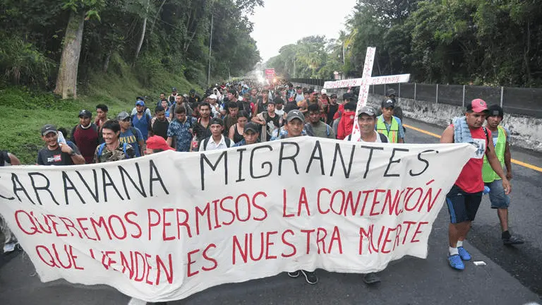 A leader of a 5,000-strong migrant caravan heading towards the U.S. border has claimed that Latin American nations are 'ganging up' on the Biden administration and creating artificial problems, in order to extract money from Washington DC. Irineo Mujica (pictured left), a U.S. citizen who describes himself as a human rights defender, told Real America's Voice he was 'shocked' that Joe Biden was being played by Mexico 's president and other regional leaders, and said the White House 'has a lot to learn'.