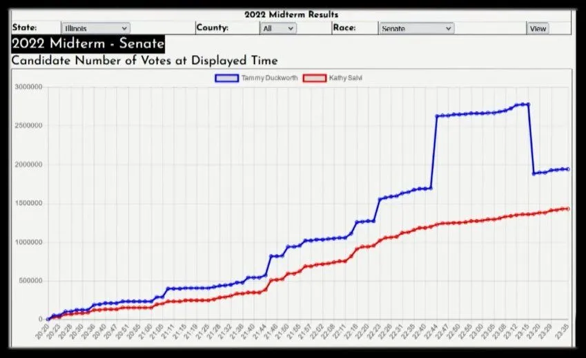Here are some more "crime spikes" that occurred from the fraudulent ballot dumps. Notice the first one - The machine over-corrected then had to back it down to keep from appearing too obvious: