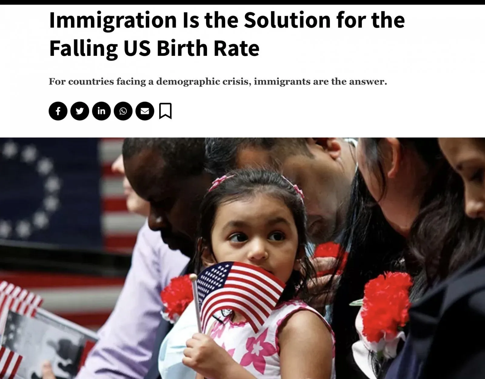 If there's any truth to that then it's on account of the right's racist bent which results in them being unable to understand that the immigrants are the equivalent of American babies being born.Not hardly. The right is more against increasing the population with immigration, especially the horrendous open borders illegal immigration that Joe Biden is presiding over right now.