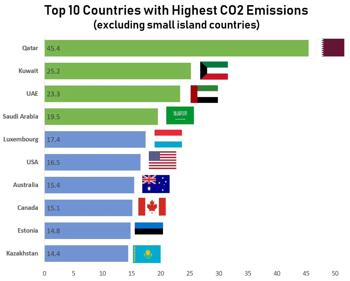 according to this chart, Qatar is 40 in rank, but 2nd when sorted by per capita.If you accept AGW and you have an ounce of sense, you would realize that the critical parameter is not total emissions, it is PER CAPITA EMISSIONS.