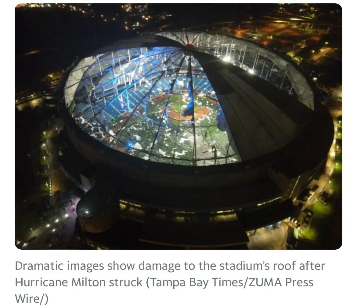 But Tropicana Field’s (in the Tampa area) roof took a big hit:
