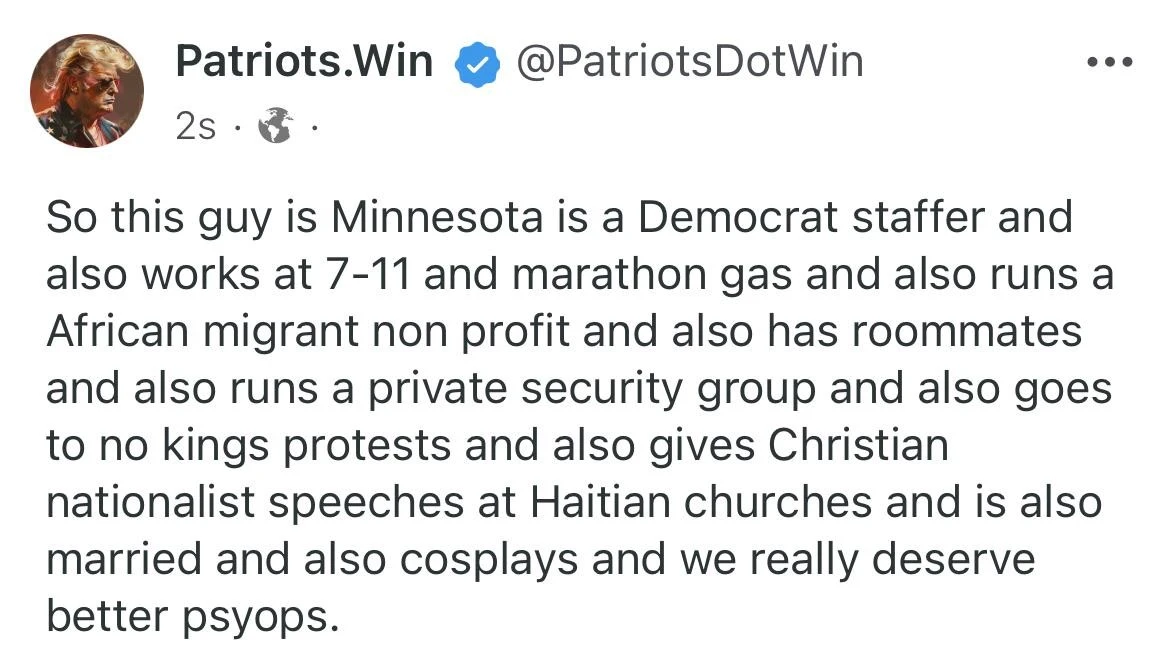 The MAGATS on here are twisting themselves into pretzels trying to convince themselves that this MAGAT Murdering POS was anything other than a mindless trump cult member. On the other hand, FOX news is ignoring the murder. They know who this POS is and don't want their devoted 24/7 followers to know one of their's is the man running from law enforcement in Minnesota. Listen up MAGATS:So you think a bunch of flyers in his car is somehow more relevant than what his roommate said and the assassination list?