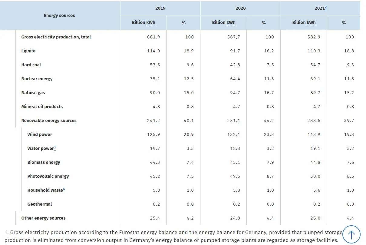 Tables on the subject: This table contains gross electricity production in Germany from 2019 to 2024.www.destatis.de
