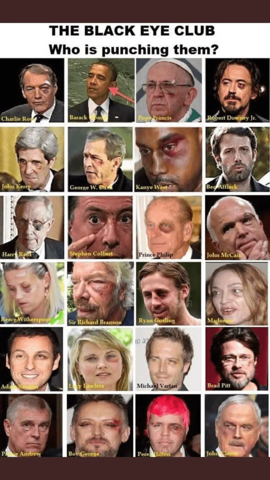 ~~~~~~I looked far worse when I was only 27. I collided with the shortstop while playing center field face to face. His glasses cut my eyebrow open and everything to the left of my nose was black down to my jawbone. Everyone thought my wife caught me with a frying pan.