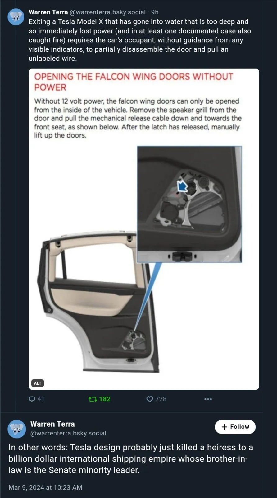 After eating dinner together and celebrating the Chinese New Year on Friday night, Chao left the guesthouse around 11:30 p.m. to head back to the main house, where her son was sleeping. It was cold out, so she decided to take her Tesla Model X SUV for the four-minute drive rather than walk.