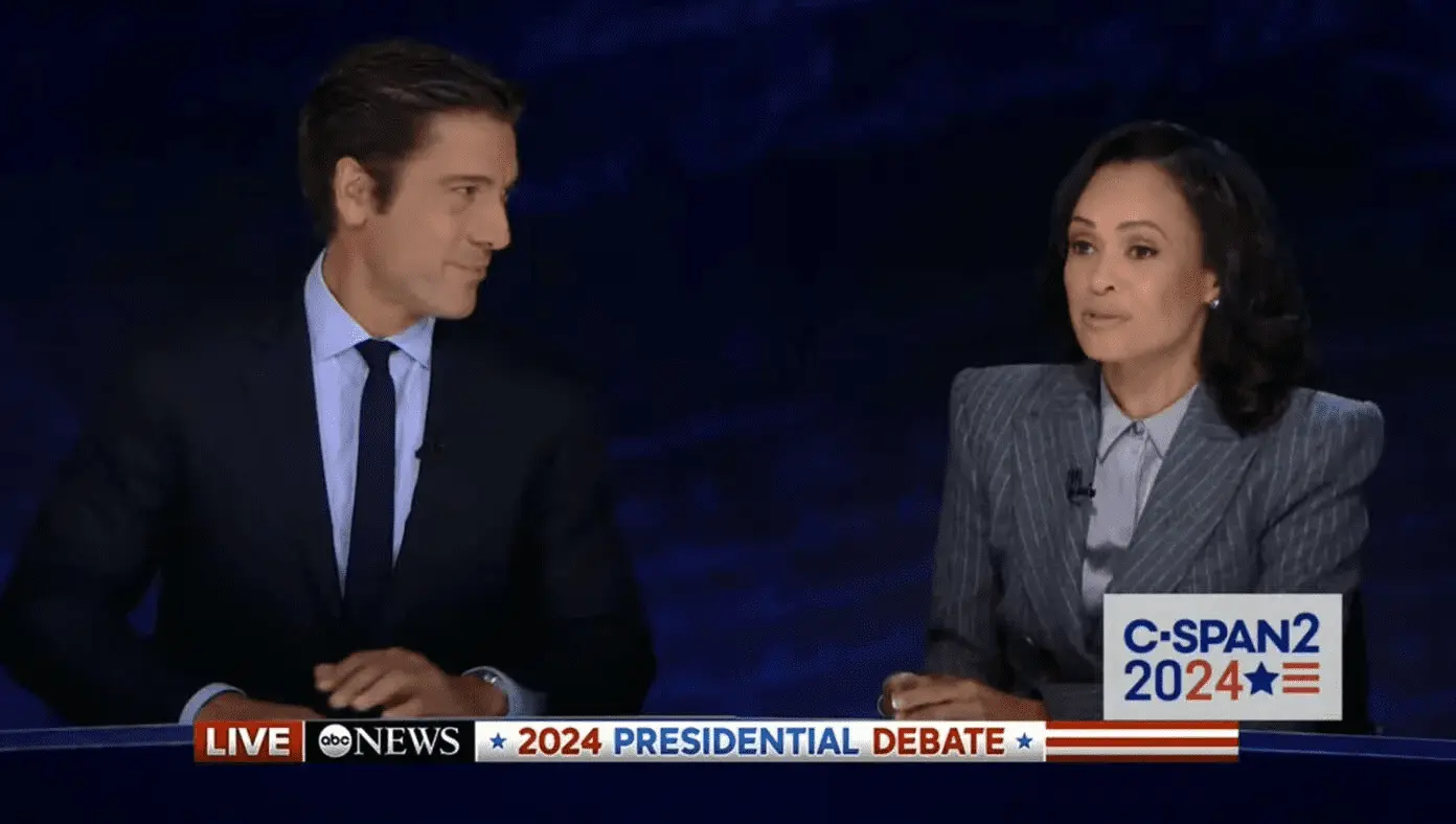 U.S. — Midway through the first presidential debate between Donald Trump and Kamala Harris, debate moderators David Muir and Linsey Davis called a timeout to discuss strategy with Harris.