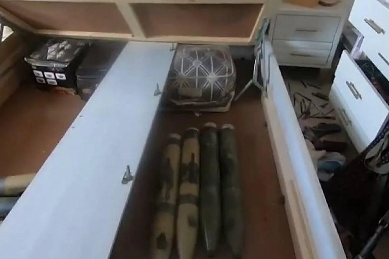 A video released by the military shows soldiers lifting the bed, revealing several rockets stashed away in a compartment under the mattress.