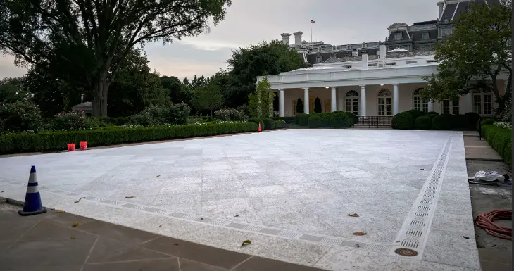 Turning the dismal paved "rose garden: back into the iconic rose garden should present no major problems.