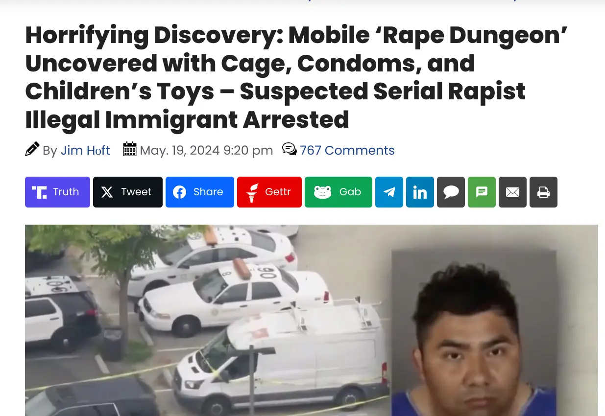 Horrifying Discovery: Mobile 'Rape Dungeon' Uncovered with Cage, Condoms, and Children's Toys ā Suspected Serial Rapist Illegal Immigrant Arrested | The Gateway Pundit | by Jim Hį“ft