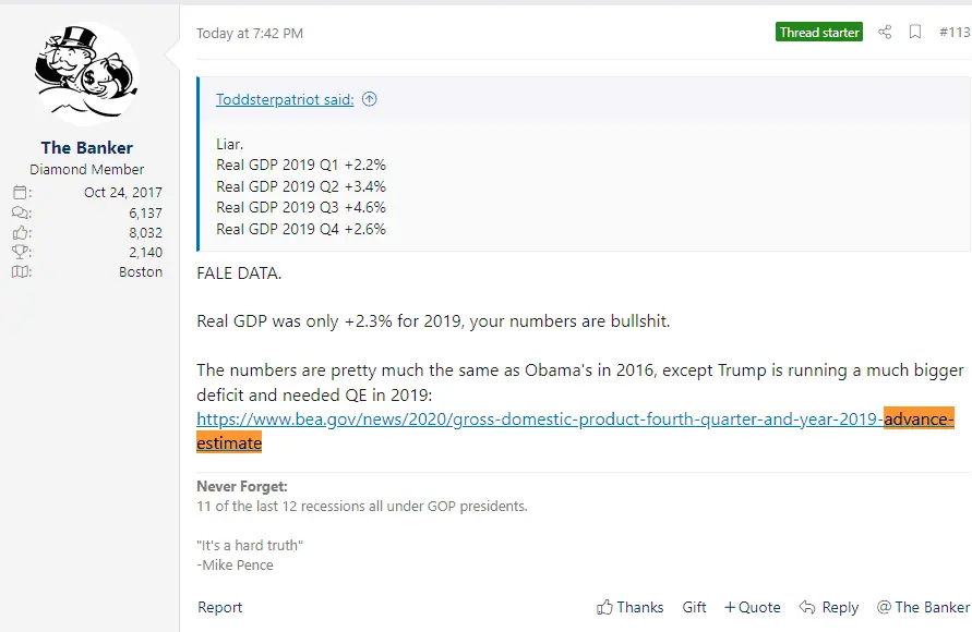Real GDP came in at 2.3% for the year. Too bad, you lose like always.