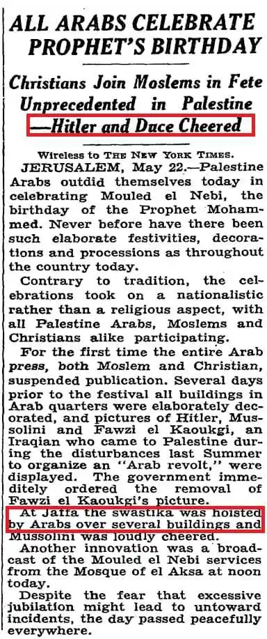 By 1937, Arab-Christians joined the Arab-Muslims in celebrating, Muhammad's birthday by displaying pictures of Hitler & Mussolini.