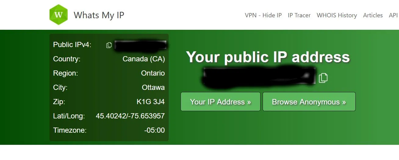 Once again, I live a thousand miles from Ottawa. I should never have an IP from Ottawa and the tech person I called at representing my ISP stumbled trying to explain it.