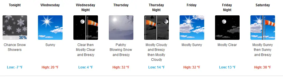 My high temperature today is just 5 degrees above ZERO... and my Low tonight is going to be -10 deg F. These are January temps during a COLD snap. We are 39 degrees BELOW AVERAGE!Update today, the ten day forecast rain, snow, today, rain snow, tomorrow, rain snow, thursday, the next seven days high only 40 degrees, average temp is mid 50s. warmer? hahaahahahahaha