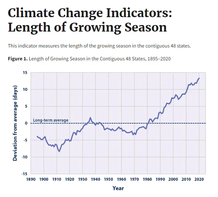 Climate Change Indicators: Length of Growing Season | US EPA